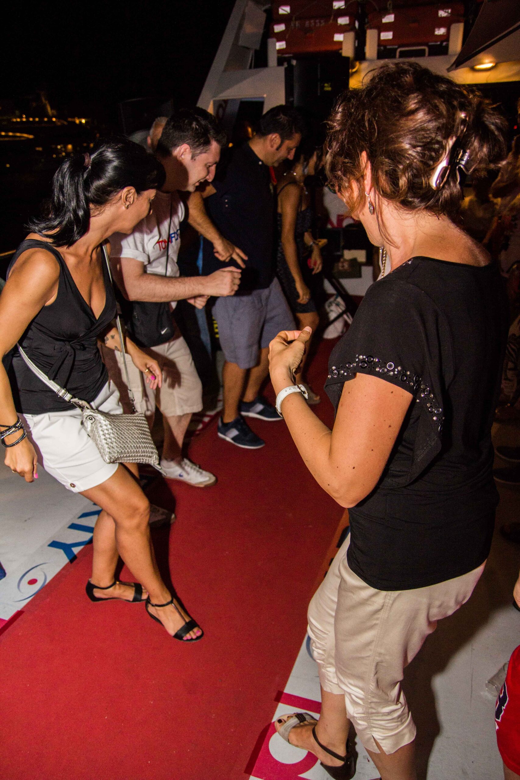 Music, dancing, and a lively social atmosphere accompany the journey until we reach our reserved viewing position for the fireworks.
