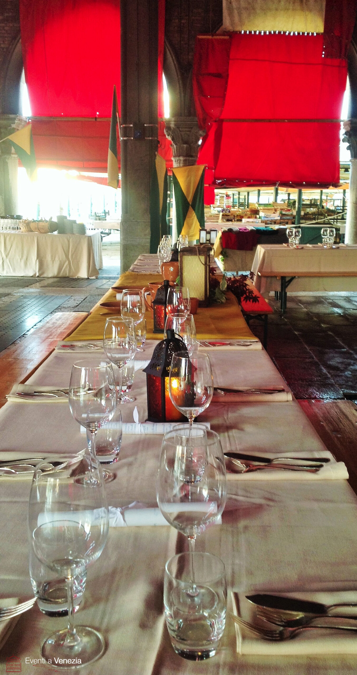 The main challenge was to transform the Rialto Fish Market, a place where the fish market takes place until 2:00 pm, into an exclusive venue ready to welcome guests from all over the world. Every detail was carefully managed, from the set-up to the scenting of the spaces and logistics, in order to create a refined and evocative atmosphere.