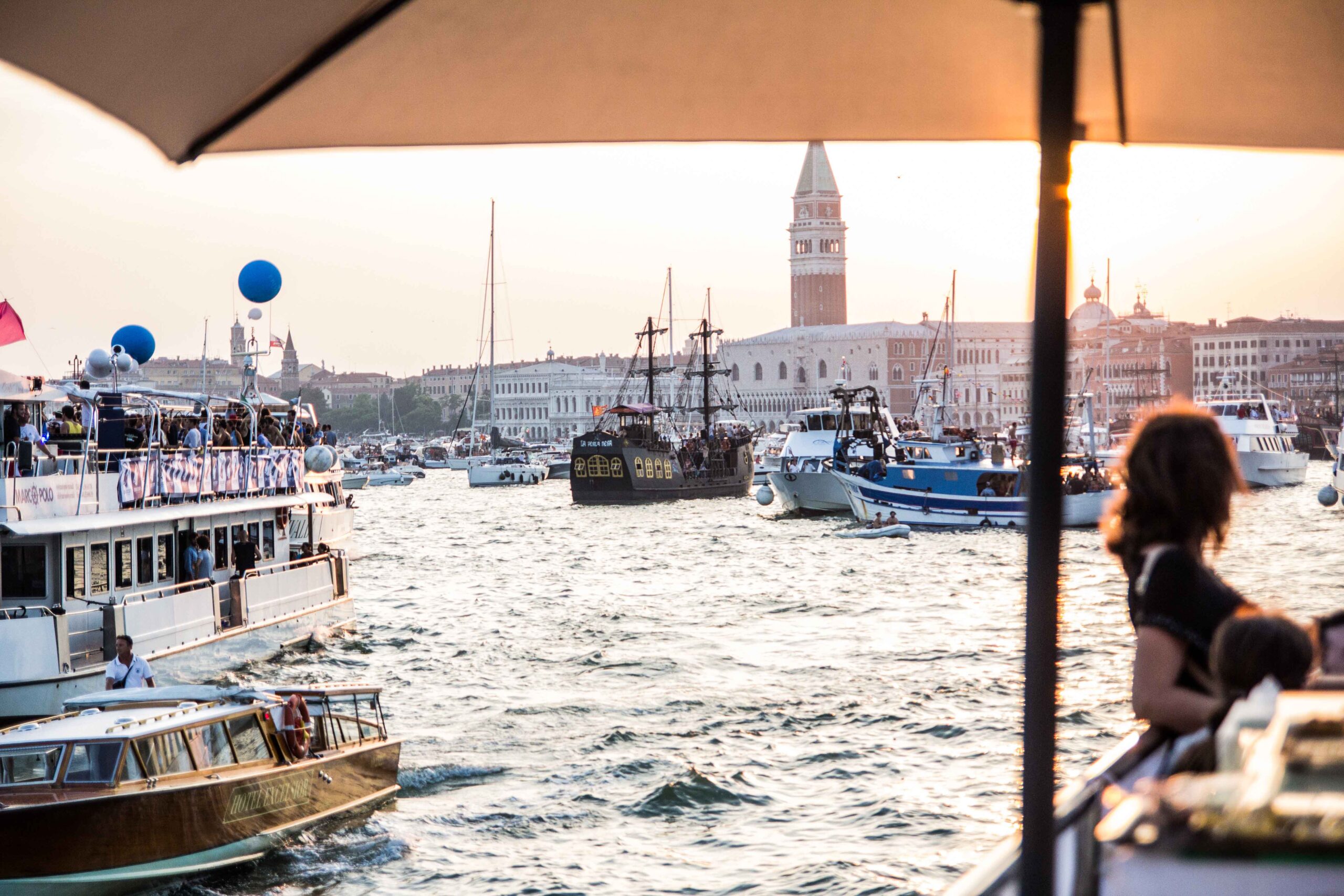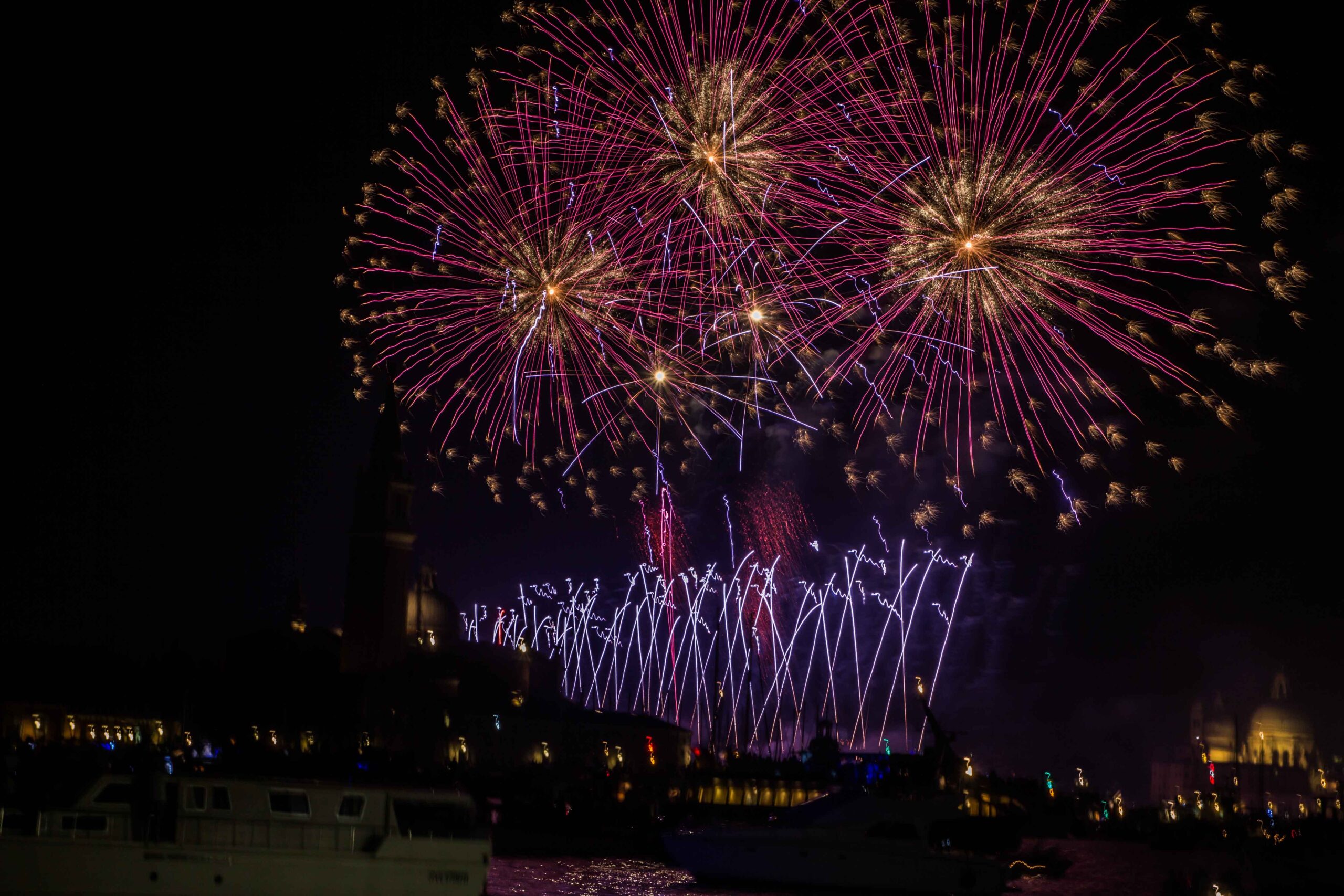 Itinerário: Navegaremos pela Lagoa de Veneza, passando pelas ilhas de San Clemente, San Servolo, San Lazzaro dos Arménios e o Lido; depois atravessamos o Bacino de San Marco e o Arsenal, para alcançar o canal da Giudecca, próximo à Igreja do Redentore. Jantar, música e o espetáculo de fogos esperam por você.